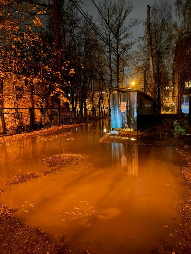 Ул. Полиграфистов в Чехове! Затопило, не проехать, не пройти!