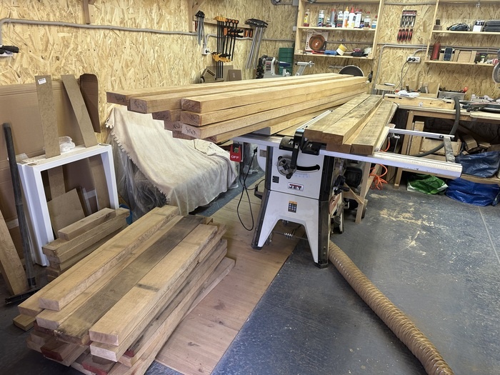 Бук пока отложим в сторону и займемся полотнами. Сечение каркаса будет 40*100мм. Строгаем, обрезаем в размер.