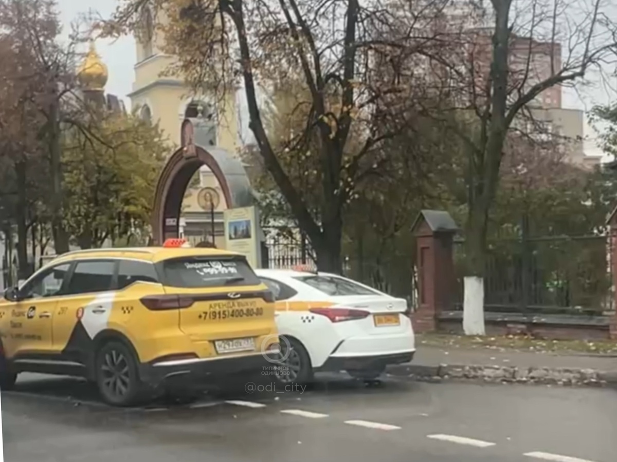 У Гребневской церкви два таксиста не поделили дорогу. Можайка начинает тормозить