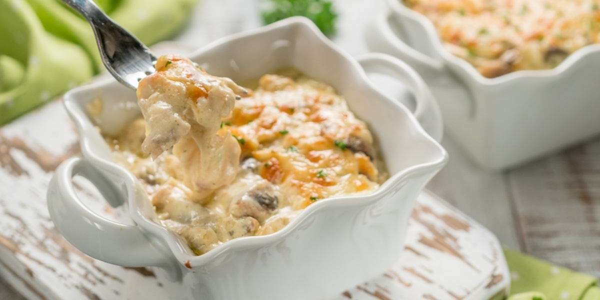 Сливки, грибы, курица, картофель — всё на своих местах.