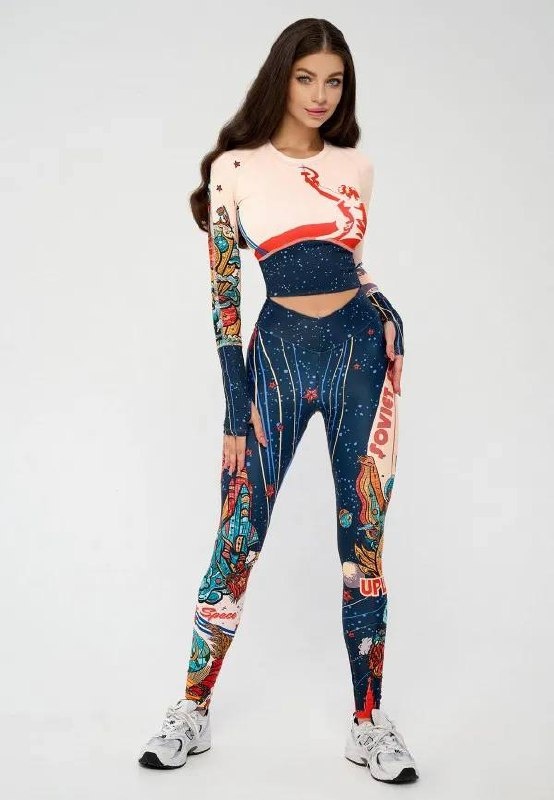 Принты в советском стиле Обожаю в современной моде использование ярких советских мотивов: космос, Гагарин, рабочий и колхозница, мозаики и многое другое. Нашла красивый спортивный костюм 😍 Правда, не уверена, что будет хорошо сочетаться с кокошником 😂