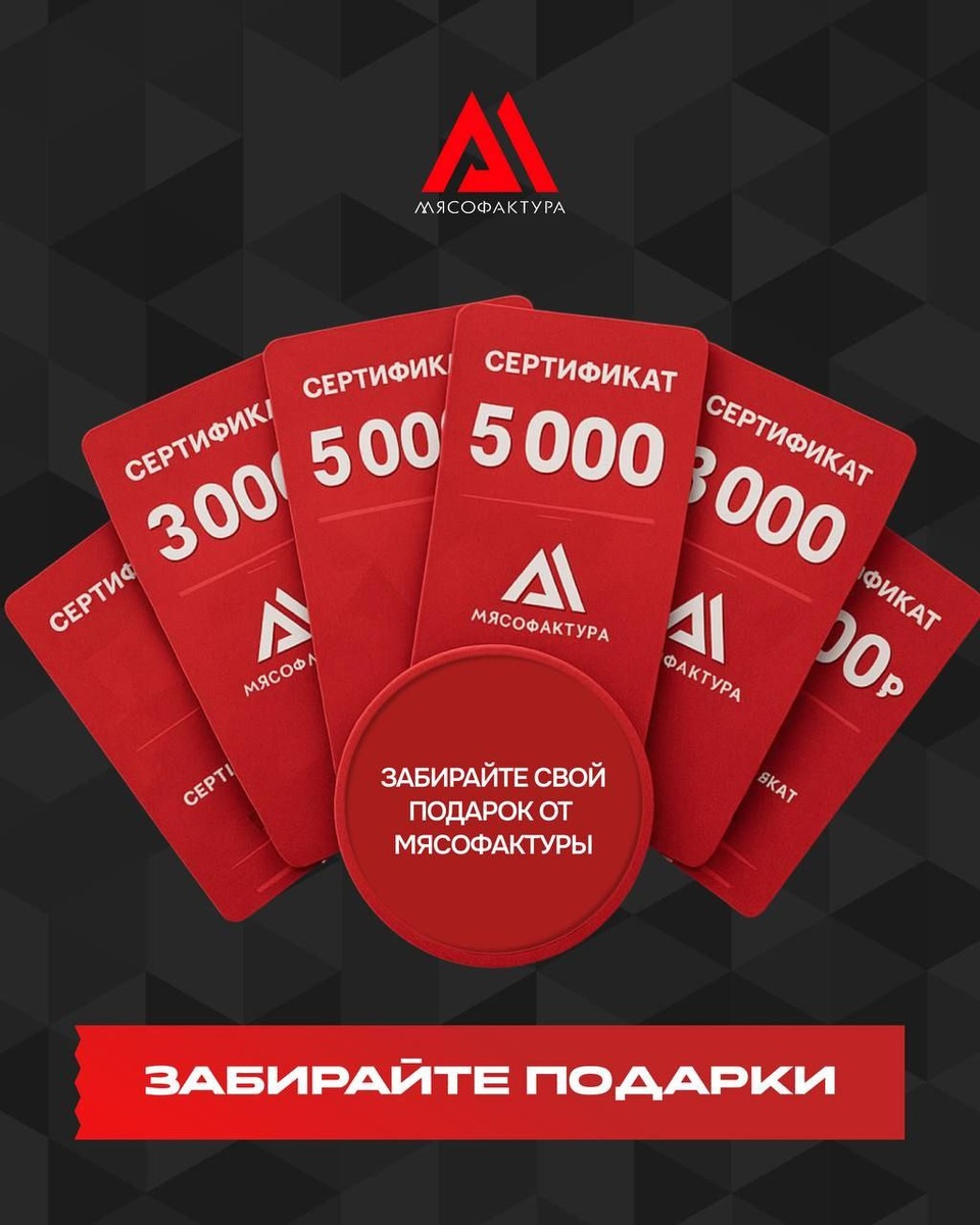 🥩 ХОЧЕШЬ МЯСА? ВЫИГРАЙ СЕРТИФИКАТ ОТ "МЯСОФАКТУРЫ"! 🥩 "Мясофактура" (служба доставки от "Мясного Базара", "Мясного Короля" и "Мясного Гастронома") празднует день рождения и дарит возможность выиграть вкусные призы! 🥳 Сертификаты на покупку фермерских продуктов: 🥇 10 000 ₽ 🥈 5 000 ₽ 🥉 3 000 ₽ Участвуй и попробуй настоящие, качественные продукты без ГМО и химии! 👍 ➡️ Переходи по ссылке и выполняй простые условия Не упусти свой шанс! 😉