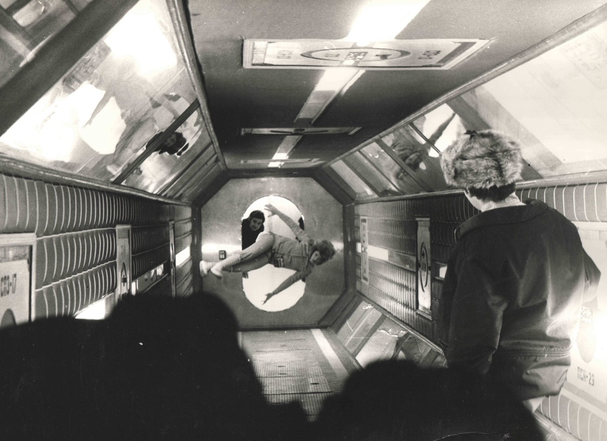 По фото видно, что конструкция декорации «коридора звездолета» крутится-вертится на все 360 градусов, чем и достигается эффект невесомости.