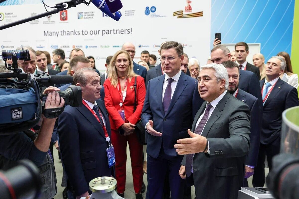 Заместитель Председателя Правительства Российской Федерации Александр Новак и заместитель Мэра Москвы в Правительстве Москвы Петр Бирюков в рамках Российской энергетической недели осмотрели стенд Правительства Москвы, где были представлены достижения предприятий Комплекса городского хозяйства столицы, и в их числе - продукция собственного производства московских газовиков.