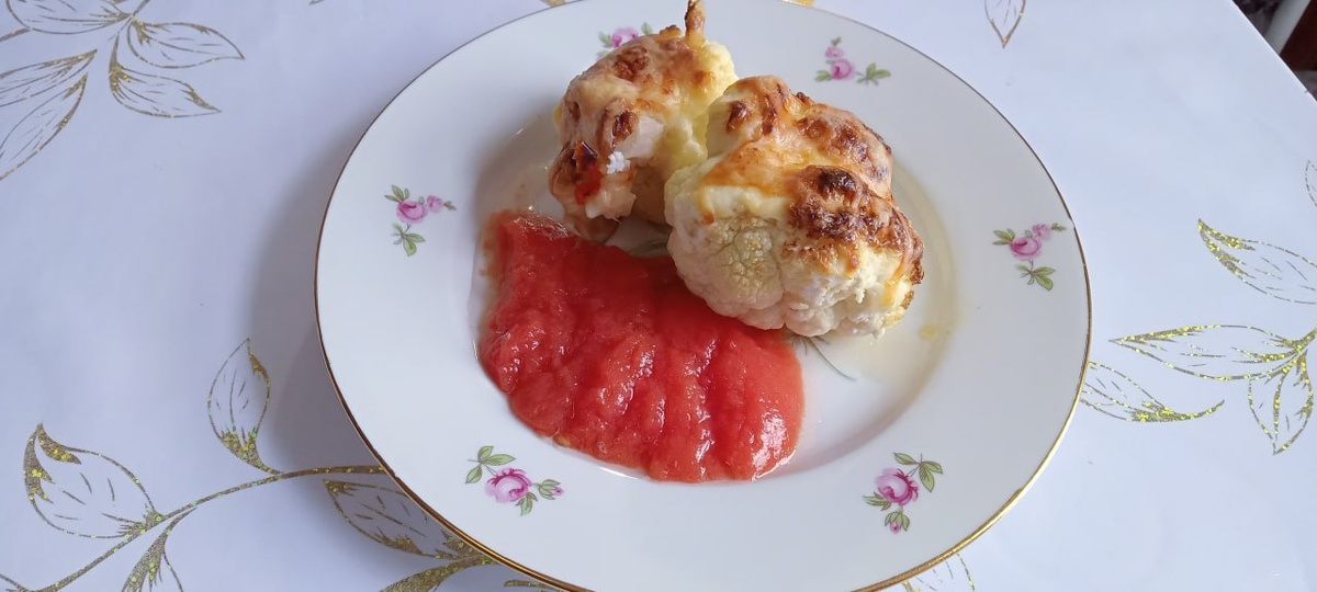 🥦 Запечённая цветная капуста под сыром и сметаной с томатно-имбирным соусом!