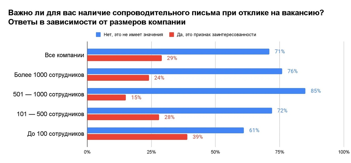 Кажись, сопроводительные письма уже не в моде! Только треть работодателей их реально читают, остальные считают, что это прошлый век. В креативных сферах и для руководящих позиций письмо ещё может помочь выделиться, а вот рабочим и логистам оно, скорее всего, ни к чему. Малый бизнес любит письма больше, чем крупняк. В общем, решайте сами, стоит ли заморачиваться!