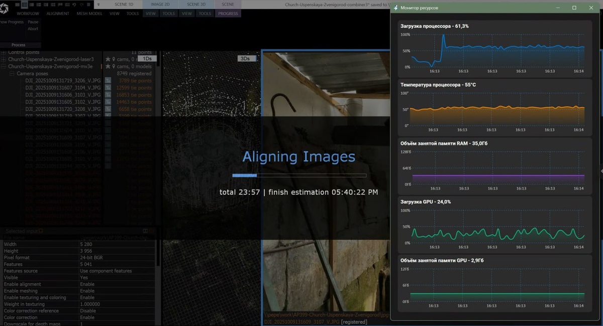 Тем временем, Reality SCAN опять что то учудил. Вот Reality CAPTURE не позволял себе подобных неоднозначностей. Висит 30 часов на простой процедуре объединения двух компонент! Я уже сделал всё в RC на другом компе, RS оставил страдать.