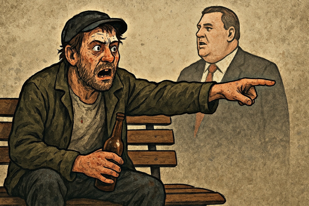 Есть в России удивительное явление: человек сидит на лавочке, пьёт пиво «Жигулёвское» за 80 рублей, клянчит на «четвертинку» — и с пеной у рта защищает олигархов. «А ты кто такой, чтобы против Путина говорить? Они хоть что-то делают! А ты что сделал?!»