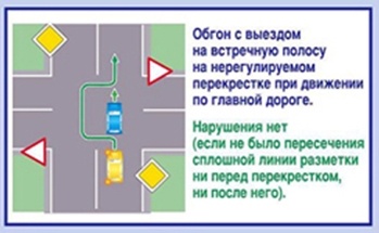 И, в-третьих, глядя на этот рисунок, можно понять, что Правила рекомендуют нам обгонять на перекрестке. Ничего подобного. Правила нужно понимать верно. Хотя нам и не запрещен обгон на нерегулируемом перекрестке на главной дороге, это еще не значит, что именно на перекрестке надо делать обгон. Это же перекресток. Проезжай дальше да обгоняй. Надо понимать, Законодатель просто не мог запретить обгон на перекрестке, ибо может создаться такая ситуация, что очень надо обогнать, а мы не вправе будем совершить обгон, и искусственно образуется «пробка».