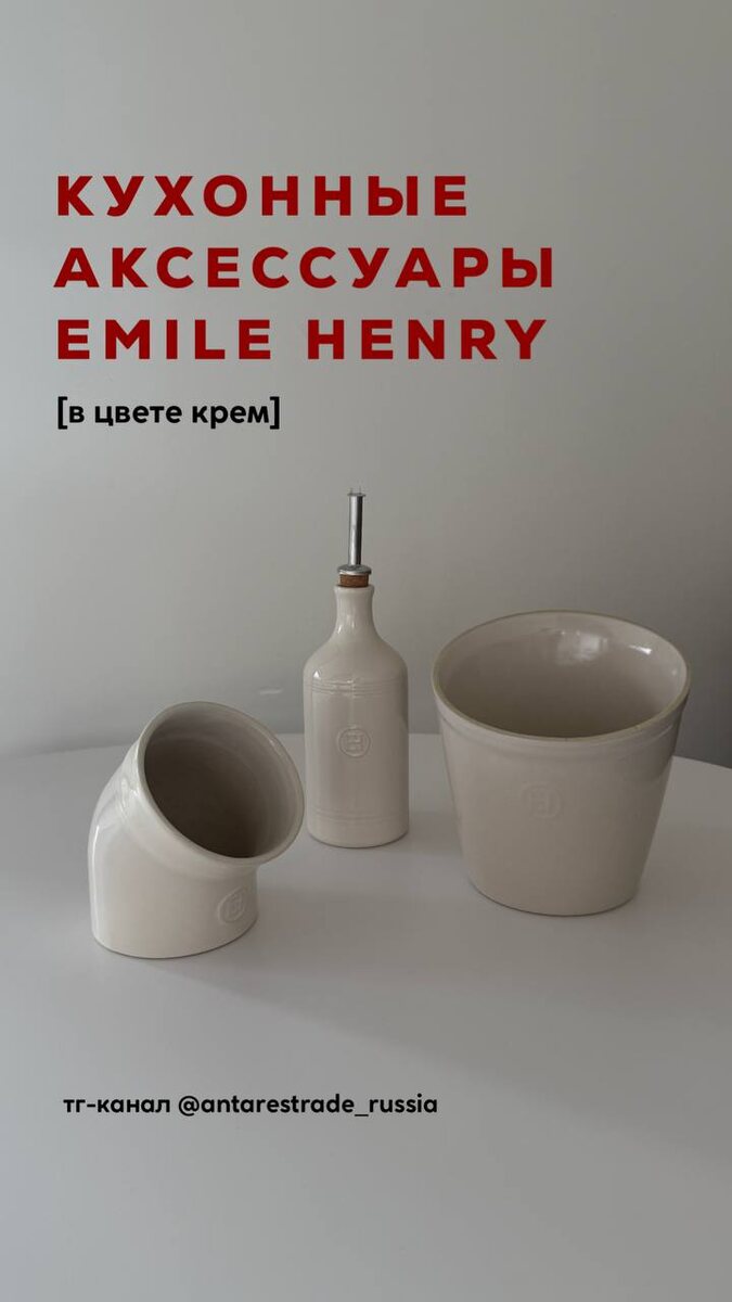 КУХОННЫЕ АКСЕССУАРЫ EMILE HENRY [в цвете крем] Бутылка для масла Масленка Солонка Подставка под ложку Бутылка для уксуса Пиала Ступка Тарелка Рамекин Салатник 3,5 л Салатник 5,5 л Вся продукция бренда по ссылке ⬅️