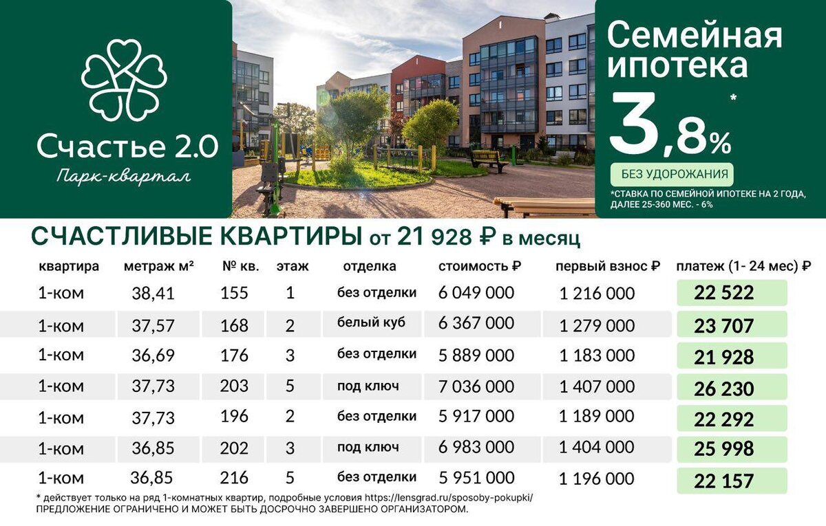 💥 На указанные квартиры действует специальное предложение - ставка по семейной ипотеке 3,8% на 2 года.