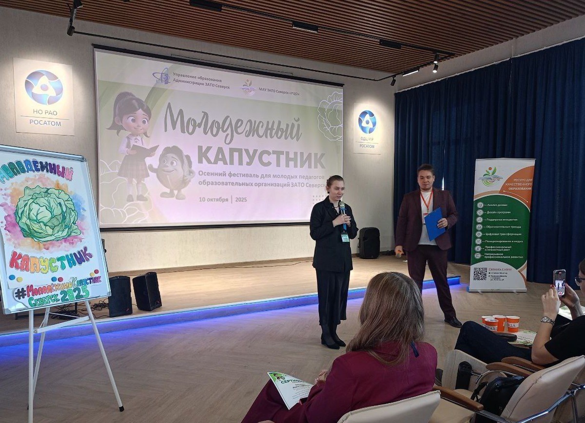 В Северске состоялся молодежный капустник для молодых педагогов 10 октября в «молодежном пространстве» от АО «ОДЦ УГР» и ФГУП «НО РАО» состоялся осенний фестиваль «Молодежный капустник». Мероприятие стало яркой возможностью для комфортного и творческого общения молодых педагогов Северска. С приветственным словом к молодым педагогам обратилась директор Ресурсного центра образования Северска Алла Анатольевна Ниякина и главный специалист Молодежного пространства «Экологические решения Госкорпорации «Росатом» Екатерина Евгеньевна Колясова. Специалисты Ресурсного центра образования Северска познакомили молодых педагогов с мероприятиями, которые подготовлены для них в текущем учебном году. Программа фестиваля объединила в себе интерактивные форматы и неформальную атмосферу общения. Изюминкой в этом году стало участие в организации фестиваля, а также подготовка и проведение его площадок молодыми педагогами с опытом работы от двух лет.