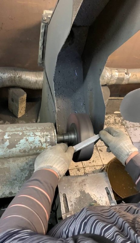 Мы используем стали Х12МФ, AUS 8, AUS 10 и VG-10. Это проверенные марки, дающие идеальное сочетание твердости и стойкости режущей кромки. На эксклюзивных моделях я применяю M390, S390 и мозаичный дамаск — они требуют ювелирной работы, зато дают невероятный результат. Работа кузнеца Настоящий куз