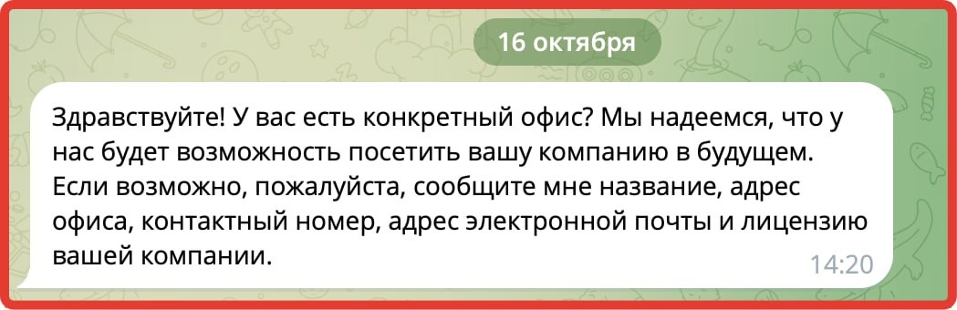 С лета пытаемся начать работать с Китайским заказчиком. И я начинаю думать, что это либо пипец крупная компания, либо мошенники :) Просят дать адрес, хотят приехать. Может они что-то попутали и не разобрались, что мы мелкие дрочепоты в Питере, а не крупная компания в Москва-Сити? :) Еще лицензию какую-то просят. Хз о чем речь. Шоу Трумена :) Русский ИТ бизнес