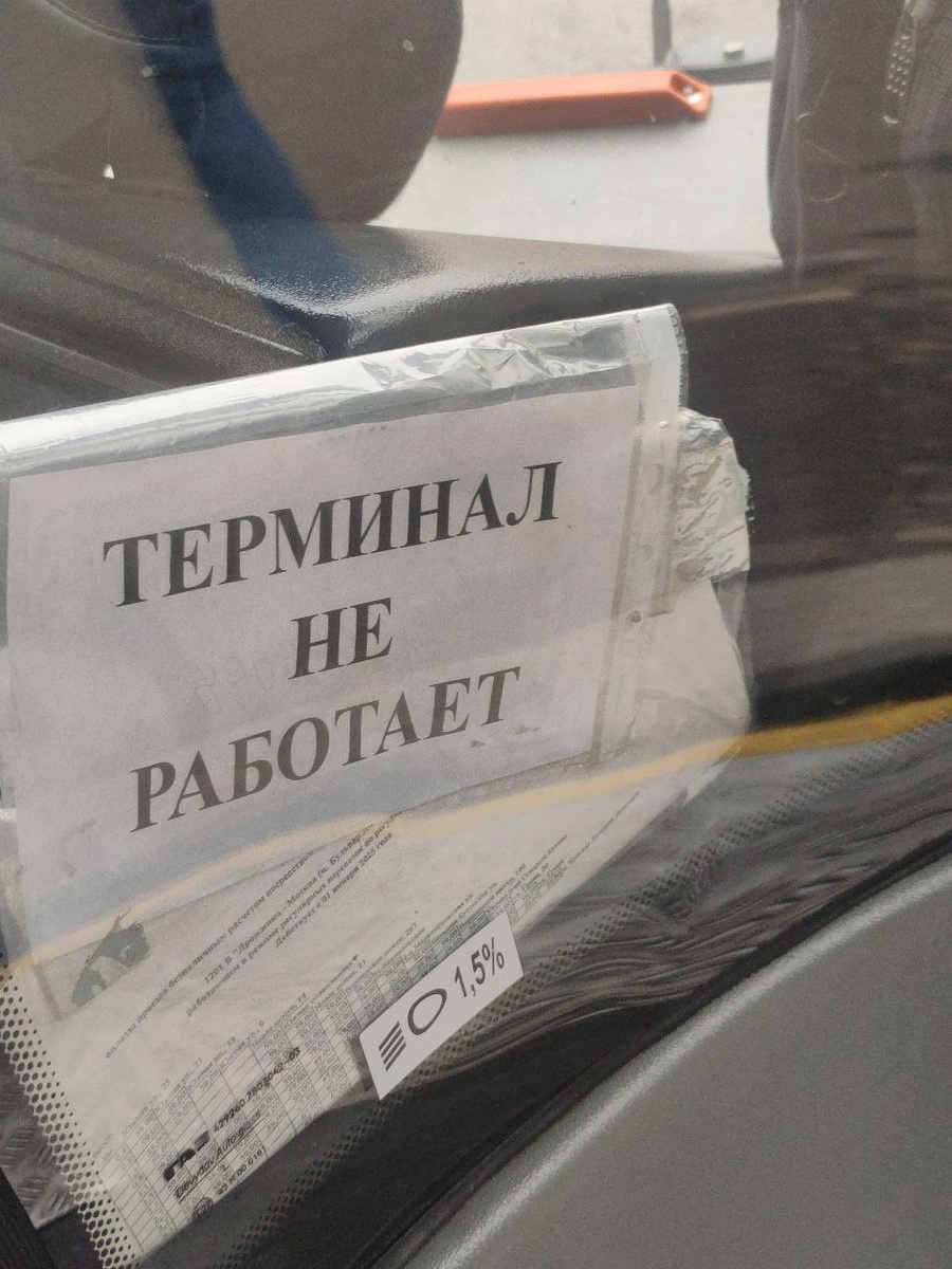 У автобуса о588ок не работали терминалы, водитель принимал оплату самостоятельно с беспроводного терминала, и цена была выше, чем на обычных терминалах, висящих на поручнях.