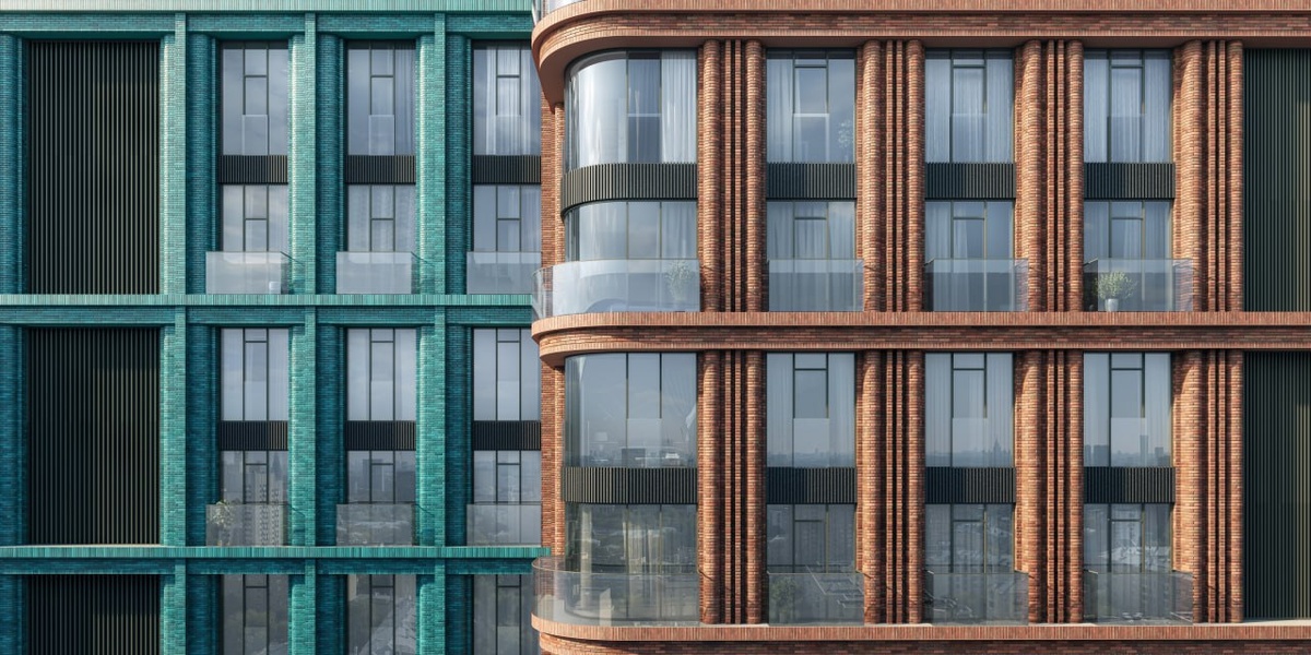 Одно из фасадных решений — бирюзовый глазурованный кирпич, который колеруют специально для «Sminex». Его необычный цвет застройщик выводил несколько месяцев: тестировал десятки оттенков, пробовал разные технологии, оценивал, как фасады смотрятся на солнце, в дождь и как гармонируют между собой.