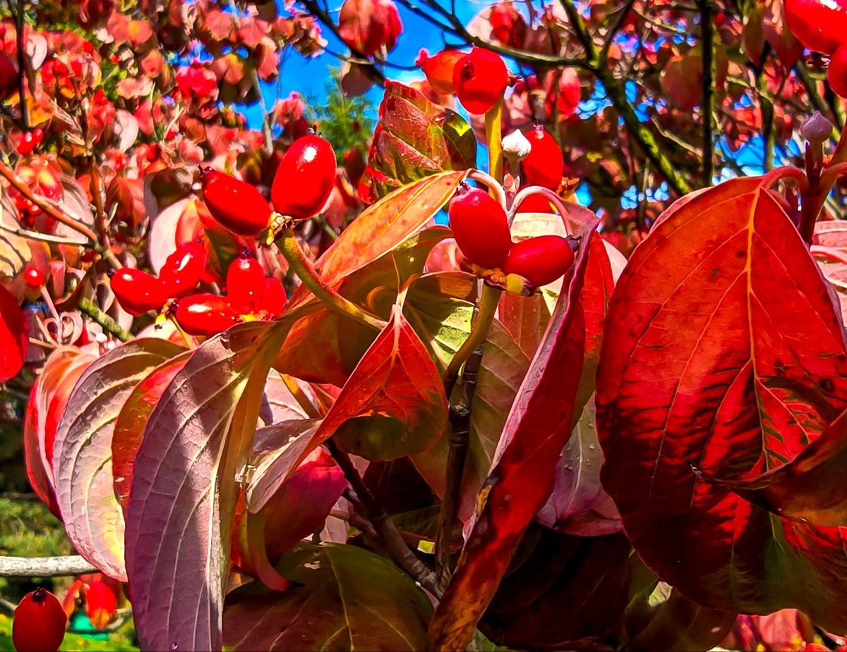 Кизил – дёрен.🍁🍂🍁 🍂Кизил — это кустарник или небольшое дерево, которое может достигать высоты до 6 метров. 🍂Его плоды — костянки, обычно имеют продолговатую форму и насыщенный красный цвет. 🍂Название «кизил» в переводе с тюркских языков означает «красный». 🍂Плоды кизила созревают в конце лета или начале осени. ❤❤❤❤❤🍁🍁 📸@yaponskiy_sad_krd 4️⃣5️⃣5️⃣5️⃣ 💜 Японский сад в MAX 🛩Японский сад | Подписаться