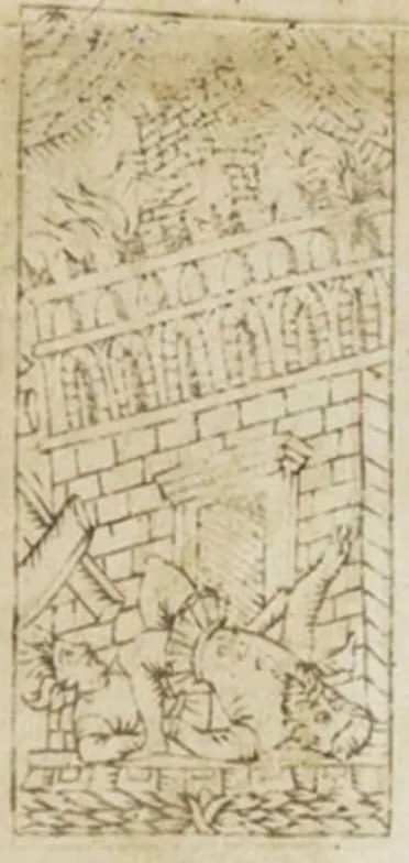 ⚡️Башня и библейские сюжеты Вавилонская башня — самая известная библейская история, с которой ассоциируют Аркан Башня. Интересно, что в самой Библии башня не разрушалась, и никто с неё не падал — люди просто перестали понимать друг друга и бросили строительство. Но уже в Средние века появилась альтернативная версия, где башня поражена огнём, и люди летят вниз — именно этот образ позже перешёл в Таро. Многие тарологи связывают Башню именно с этим сюжетом, но можно найти ещё несколько вариантов “небесного огня”, которые могли лечь в основу символики карты. ▪️ Содом и Гоморра — города, сгоревшие от гордыни. На листе Ротшильда (неразрезанном чёрно-белом листе карт) изображены два мужчины, лежащие на земле и готовые быть раздавленными падающей башней. То есть они не падают, а уже внизу — ждут кары. Есть предположение, что на листе изображено разрушение Содома и Гоморры, а не Вавилонской башни. ▪️ Цитата из Откровения (16:8) может объяснить, почему на большинстве старинных карт Башни в у