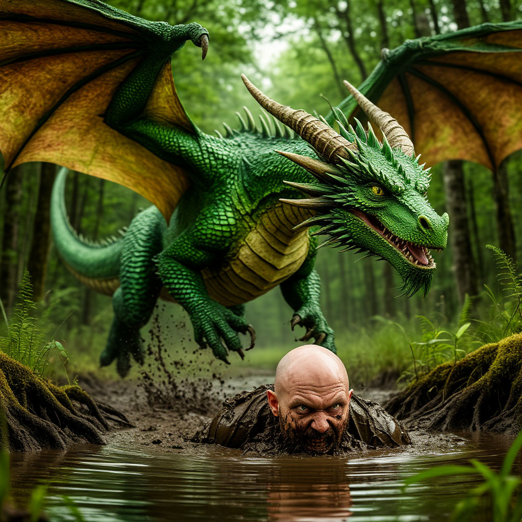 Но тут раздался треск, шум хлопающих крыльев и над забором, который отделял нас от айтишников показалось огромное грузное тело зеленого дракона.