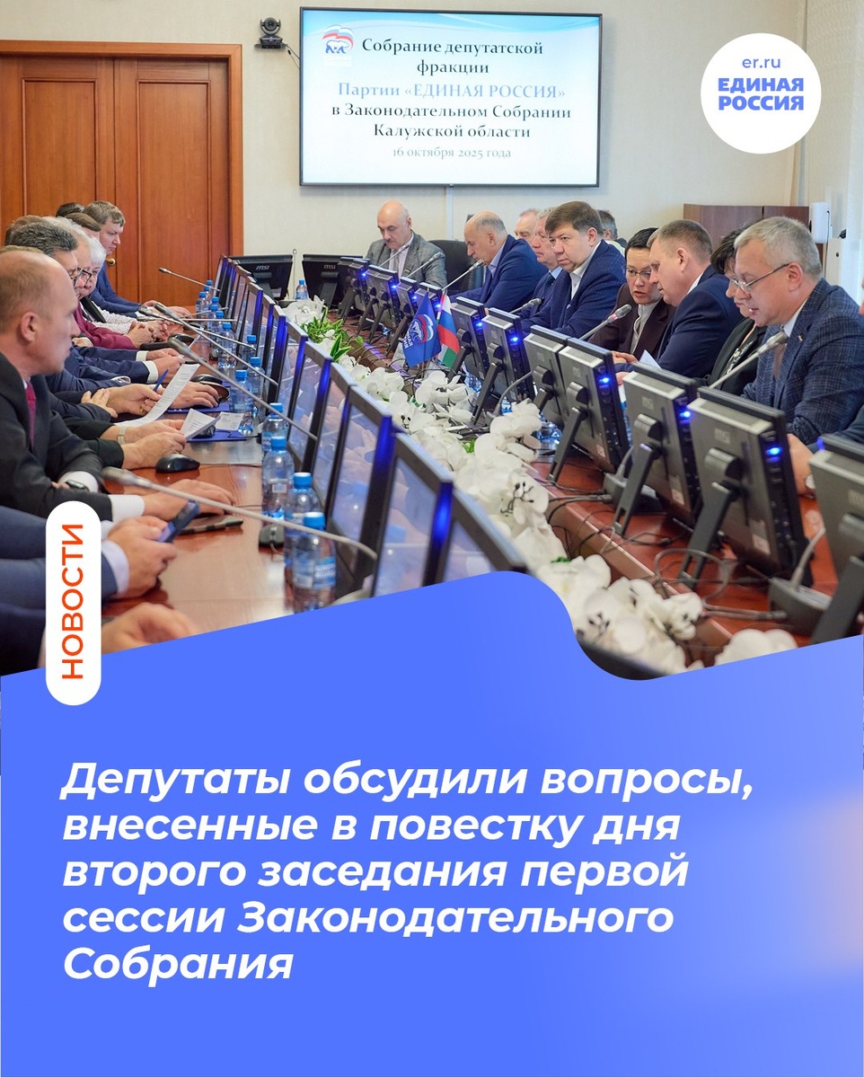 ▪️16 октября состоялось собрание фракции «Единой России» под руководством Геннадия Новосельцева. В нём приняла участие заместитель губернатора Калужской области Карина Башкатова. Депутаты обсудили повестку предстоящего заседания Законодательного Собрания и текущие вопросы. ✔️Поддержаны изменения в областной бюджет на 2025 год: доходы увеличены на 11,8 млрд рублей, из них 10,7 млрд — собственные. Средства направят на укрепление материально-технической базы больниц, льготное лекарственное обеспечение, модернизацию коммунальной инфраструктуры, переселение из аварийного жилья, развитие водохозяйственного комплекса, капитальный ремонт школ и поддержку детей-сирот. ✔️Более 6 млрд рублей дополнительно выделено на меры соцподдержки участников СВО. ✔️Одобрены изменения в закон о туризме — льготы на экскурсии теперь доступны студентам колледжей и техникумов до 23 лет. ✔️Создана рабочая группа по реализации 10 тысяч наказов избирателей. #ЕР40 #ЕдинаяРоссия