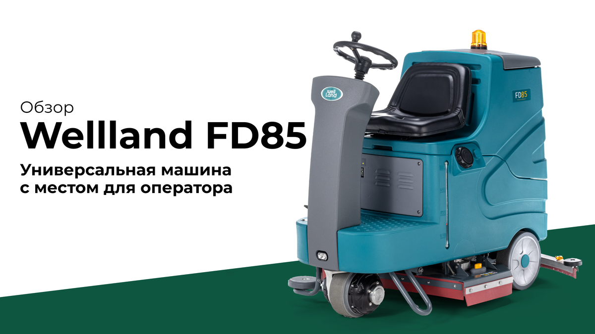 Wellland FD85 — райдер для ежедневной уборки средних и крупных площадей, когда важны скорость, качество и комфорт оператора. Машина сочетает компактный габарит 1580×870×1350 мм с производительностью до 5500 м²/ч: две щетки по 425 мм размывают загрязнения по всей ширине 850 мм, а балка 1040 мм забирает воду без разводов. Запас по ресурсу позволяет работать до четырёх часов на одном заряде (4×6 В, 220 А·ч), сохраняя низкий уровень шума — 67 дБ. Привод на колёса мощностью 450 Вт уверенно тянет на подъёмах, поэтому FD85 одинаково хороша в торговых залах, на складах, в цехах и на объектах с непрерывным трафиком.