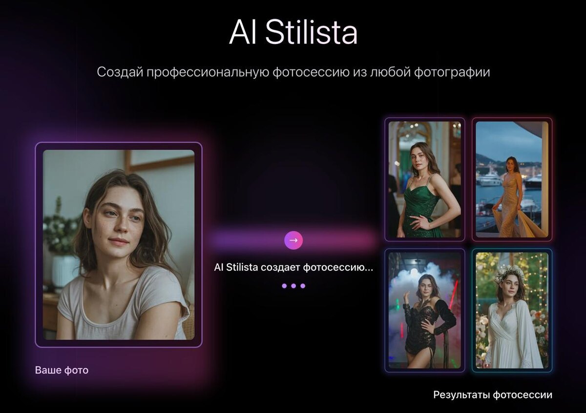 👉 Попробуй сейчас — запускай фотосессию и потом просто загружай фото и выбери свой стиль в @StilistaBot.