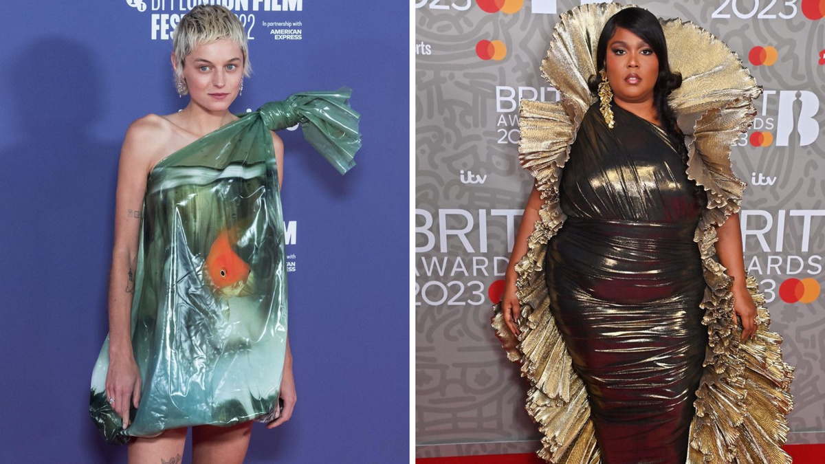 Тяжела жизнь блогера, звезды и тому подобных. Это ведь каждый день нужно напоминать людям о своем существовании, да делать это с размахом! Уже и платье из мяса шло в ход, и оголялись до неприличия, а уж сколько было сшито платье с разрезами, причем в самых неожиданных местах. Но все это уже не ново, пора придумать что-то новое. И они придумывают! Андреа Кристи решила наглядно продемонстрировать, как выглядит типичный женский возглас и одела платье в виде буквы “Ф”. Кажется, что наряд выполнен из сухоцветов и разлетится от малейшего дуновения ветерка. Впрочем, как и женское раздражение или каприз: был и нет! Сценические наряды этой певицы могут шокировать, рассмешить, но точно не оставить равнодушными. Она поражала своей фантазией еще в 90-е, когда будущая Леди Гага еще бегала с портфелем в школу. Вот и это красное платье-диван а-ля салон мебели в 1995 году еще одна галочка в списке достижений Бьорк. Известная подипозитивщица Лиззо пока не добилась такого успеха как Бьорк. В его ожида