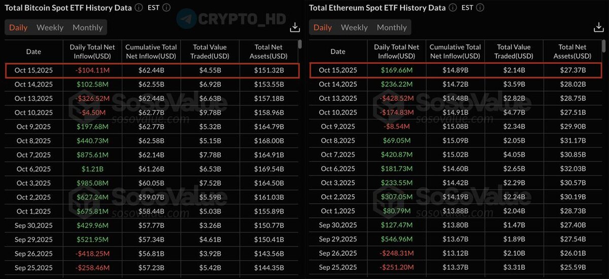 😐 В Bitcoin ETF чистый отток денег за вчерашний день составил $104,110,000$. (SV)