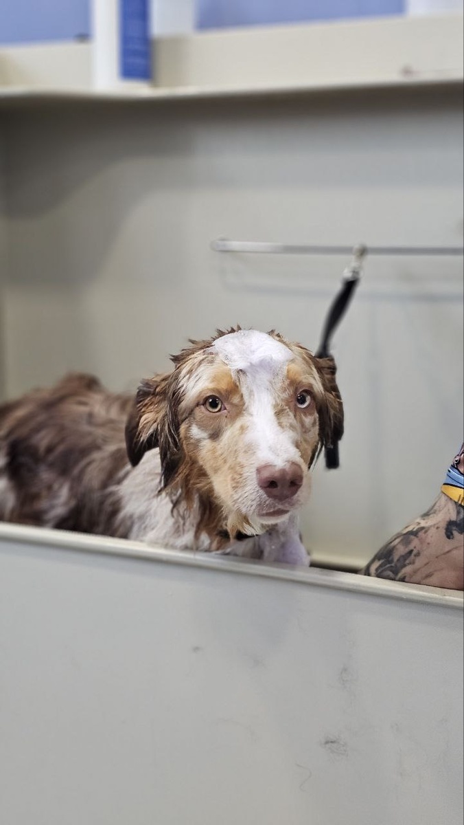 Водные процедуры у австралийской овчарки по кличке - Беляш 😍