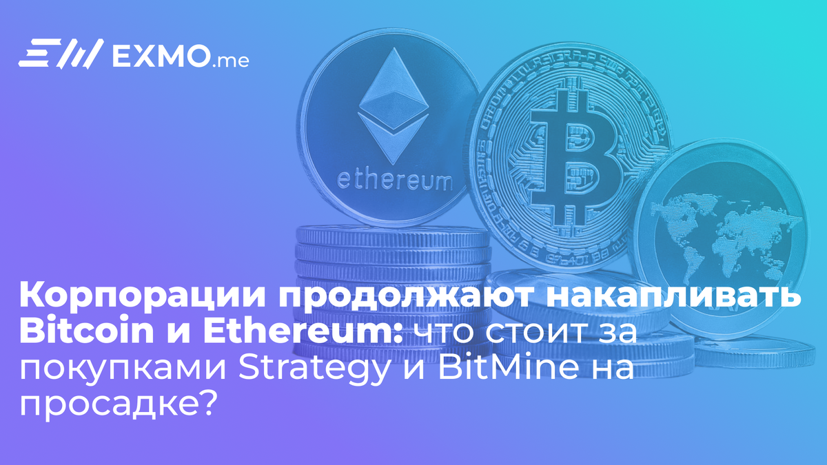 Корпорации продолжают накапливать Bitcoin и Ethereum: что стоит за покупками Strategy и BitMine на просадке?