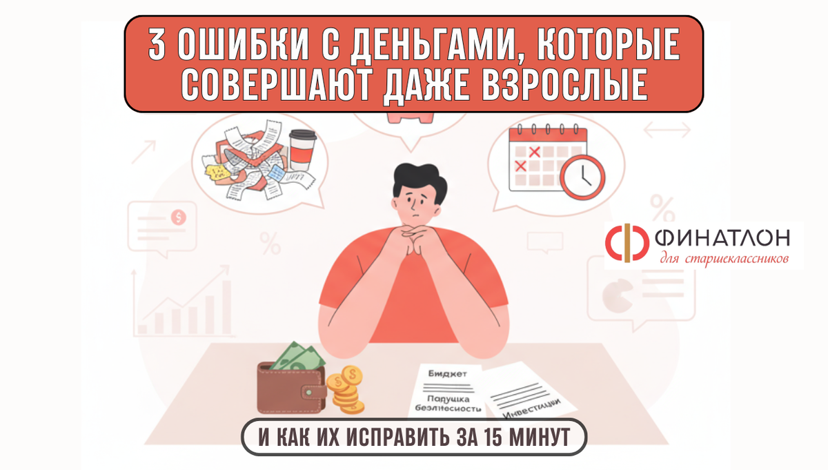 В этой статье — 3 самые частые ошибки с деньгами, которые совершают даже опытные люди, и простые шаги, как быстро их исправить. Потратите 7–10 минут — сэкономите месяцы стресса и тысячи рублей. Что получите: Симптомы: деньги кончаются «вдруг», непредвиденные траты выбивают из колеи, кредитка закрывает дыры. Почему так происходит: мозг недооценивает мелкие платежи. 300–500 ₽ тут, подписка там — и вот уже «невидимый» минус 10–20% в месяц. Что делать за 15 минут (план “3×50”) 💡 Золотое правило: сначала заплати себе (на цели и подушку), потом трать. Мини-шаблон бюджета (скопируйте в заметки): Лайфхак Финатлон: заведите отдельную «копилку» в банке и настройте автосписание в день зарплаты — так вы «прячете» деньги от себя и будущих импульсов. Симптомы: любая поломка — стресс; неожиданный счёт — кредитка; отпуск — «в долг у себя из будущего». Почему так происходит: кажется, что «и так норм», но без