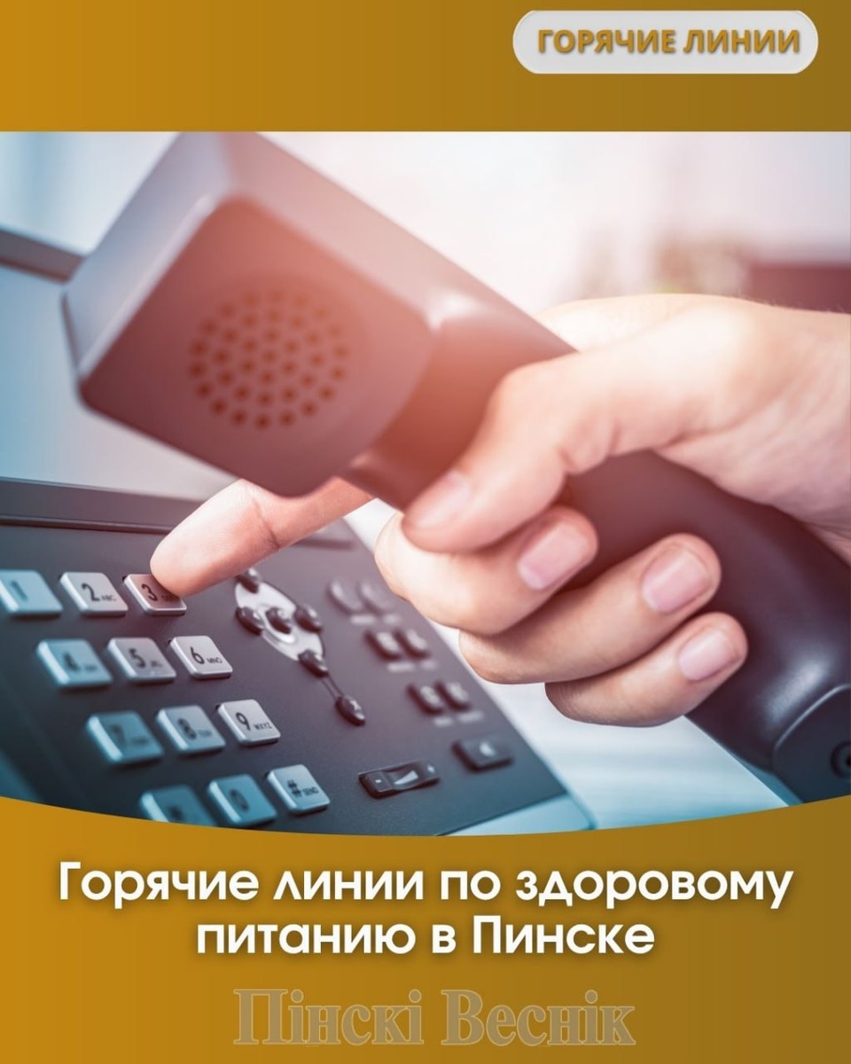 💙💙💙 ➡️Горячие линии по здоровому питанию в Пинске ⏩17 октября в рамках Дня здорового питания на телефонах будут дежурить специалисты: 🔵9:00–12:00 — Наталья Сула, врач-гигиенист (65-36-77) 🔵10:00–12:00 — Оксана Якимец, инженер-технолог (65-16-73) 🔵12:00–14:00 — Екатерина Ольшанец, технолог ОАО «Школьник» (64-72-97) 🔵14:00–16:00 — Татьяна Бут-Гусаим, врач по медпрофилактике (65-36-77) 🔔Звоните и получите консультацию по правильному питанию и здоровому образу жизни! 📍📍@Пинский Вестник ЮТУБ | САЙТ| ИНСТ | ВК | ОК | ФЕ | TikTok Прислать новость