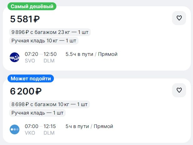 Смотрите какие интересные варианты перелетов есть на наши даты 🤘🏽