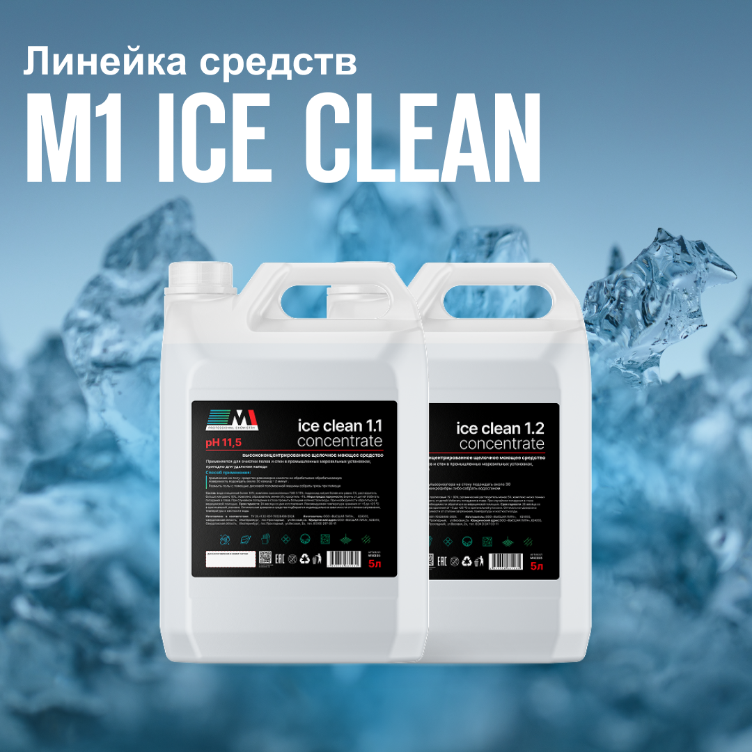 Именно для таких условий в лаборатории M1 Professional Chemistry была разработана серия средств Ice Clean. Главная особенность — антикристаллизационная формула. Благодаря сбалансированным растворителям и добавкам средство не замерзает даже при температуре –30 °C. Его вязкость и активность сохраняются, что особенно важно на морозильных складах, в цехах и логистических центрах. Каждая партия проходит серию температурных тестов: сначала при –5 °C, затем при –20 °C и –30 °C. Проверяется не только текучесть, но и способность удалять загрязнения после «обледенения».
