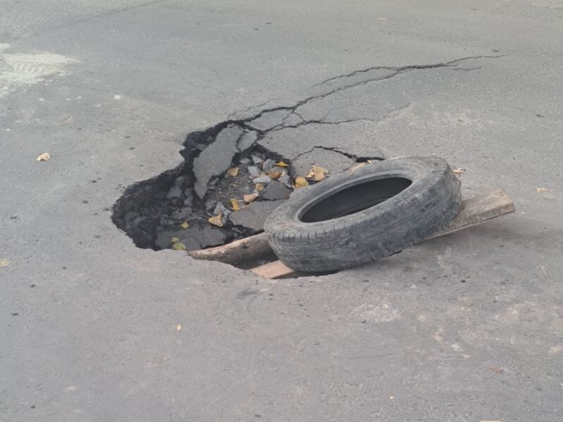 Чтобы машины не попали в дорожную ловушку, люди решили оградить опасный участок. Они положили в пробоину шину и доски. Не исключено, что в темное время суток «самодельная преграда» может оказаться бесполезной. В темноте яму можно просто не заметить.