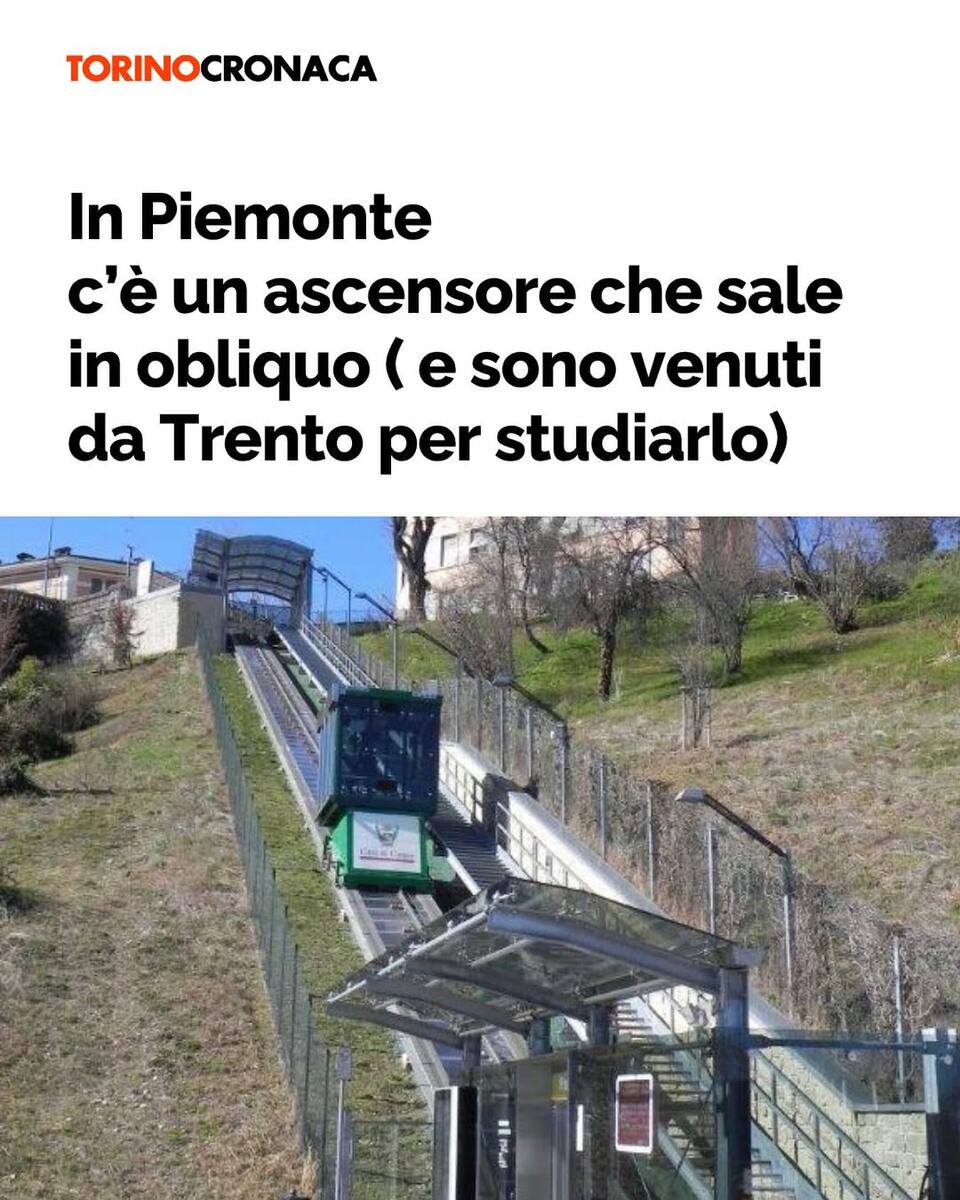 Вместо того чтобы подниматься вертикально, он передвигается по наклонной траектории. Речь идет о панорамном наклонном лифте — установке, которая соединяет нижнюю часть города Кунео, район Ольтреджессо, с проспектом Джузеппе Гарибальди. Лифт окружен зеленью, и за 45 секунд поездки открывает потрясающий вид на окружающий пейзаж.