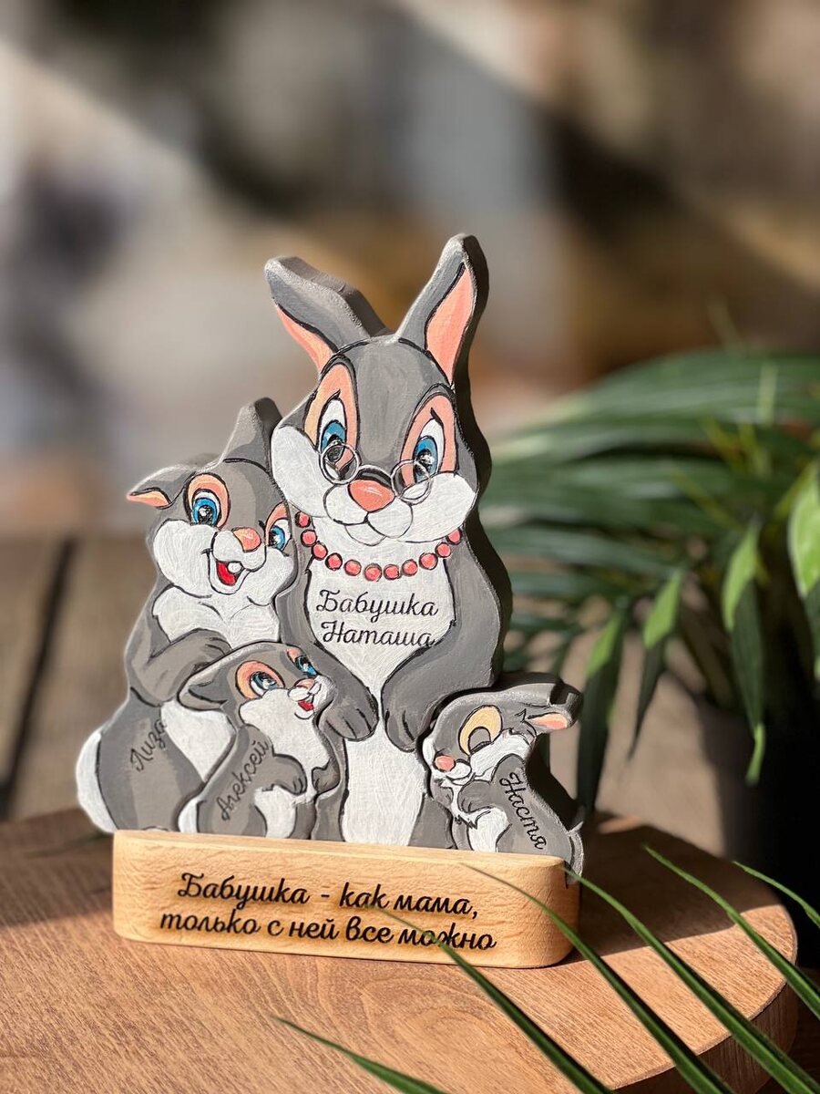 Ваш состав семьи в каждом подарке 🥰 Смотрите, каких милейших зайчиков мы отправили 🫶 Каждая фигурка сделана вручную из массива бука и расписана красками, безопасными для детских игрушек ☘️ Это отличный подарок для мамы, бабушки, дедушки или просто как тёплый семейный талисман для себя любимой. Подарите тепло и уют вашей семье!