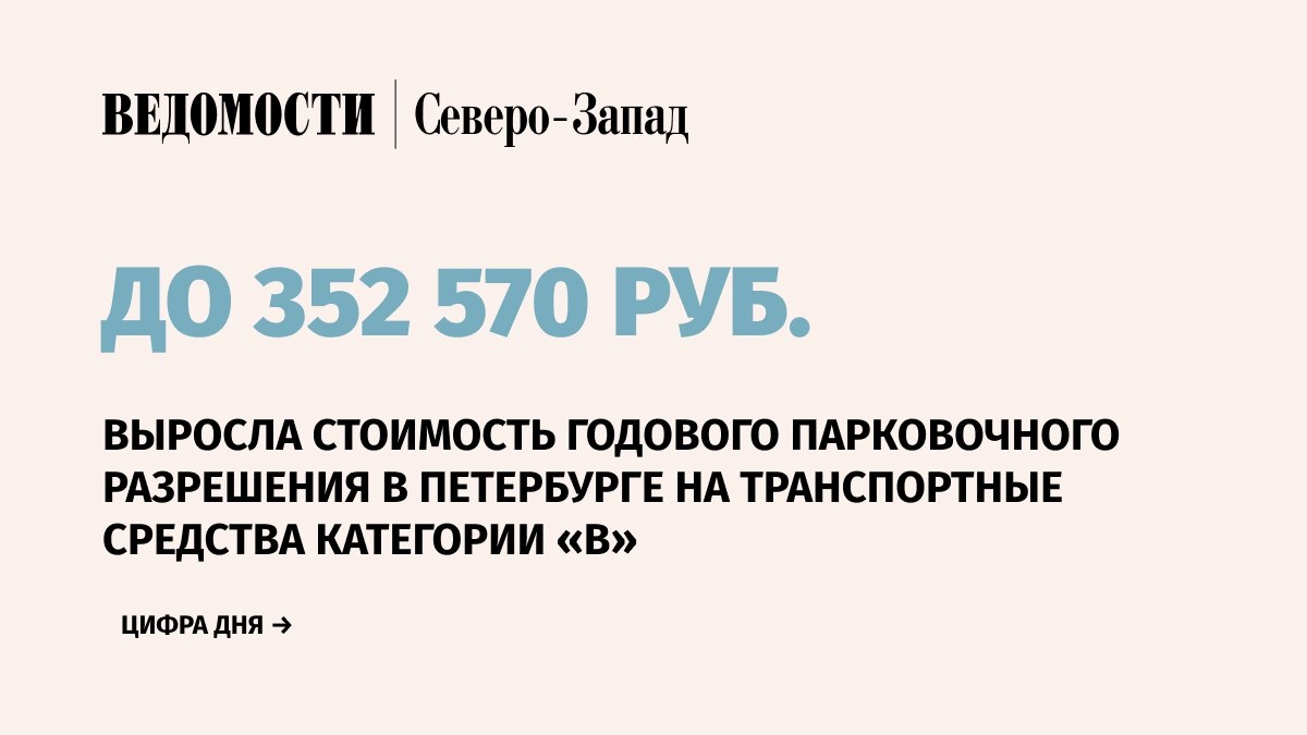 Стоимость годового парковочного разрешения в Петербурге на транспортные средства категории «B» выросла на 96% или почти в два раза (с 179 580 руб. до 352 570 руб.) после введения новых дифференцированных тарифов на парковку с 15 октября, следует из данных СПб ГКУ «Городской центр управления парковками Санкт-Петербурга». ▶️Стоимость месячного абонемента на парковку этой категории транспорта увеличилась на 61% или в 1,6 раза (с 20 075 руб. до 32 540 руб.). ▶️Годовой абонемент для транспортных средств категорий «A» и «M» составит 176 280 руб. (в 2024 г. – 71 257 руб.). Месячный тариф для этих видов транспортных средств увеличился с 7965 руб. до 16 270 руб. ▶️Стоимость годового разрешения на парковку иных категорий транспорта выросла с 356 232 руб. до 705 140 руб., стоимость абонемента на месяц – с 39 822 руб. до 65 090 руб. ➡️ Владельцы абонементов получают право беспрепятственно парковаться в пределах Центрального, Адмиралтейского, Петроградского и Василеостровского районов города. К