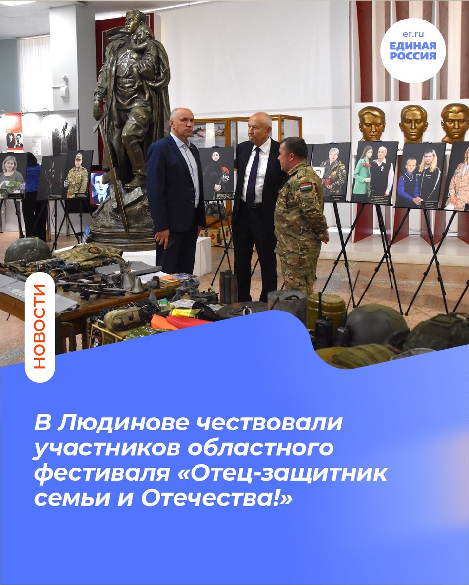 ▪️После экскурсии-квеста по музею, просмотра фильма «Бессмертная юность» и минуты молчания участников областного фестиваля «Отец — защитник семьи и Отечества!» поприветствовал врио главы администрации Людиновского округа Геннадий Ананьев. От имени председателя Законодательного Собрания Геннадия Новосельцева виновников торжества поздравил Виктор Бабурин. С теплыми словами к участникам обратился депутат Заксобрания от фракции «Единая Россия» Андрей Петров. — В Год защитника Отечества и 80-летия Великой Победы мы чествуем мужчин-отцов, которые воспитывают детей, трудятся на благо Родины и защищают её. Благодарю организаторов за возможность сказать спасибо отцам — защитникам, — отметил он. В рамках фестиваля, организованного Центром «Доверие» совместно с министерством труда и соцзащиты, 18 мужчин — многодетных отцов, участников СВО и волонтеров — получили дипломы и подарки. Ещё 8 наградили медалями «Отцовская доблесть». #ЕР40 #ЕдинаяРоссия