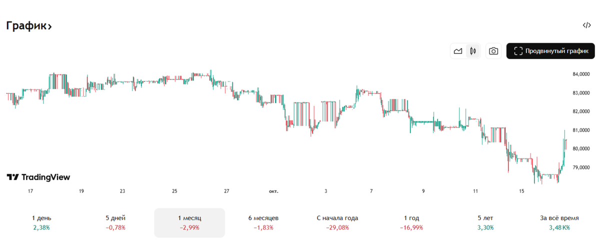 Сегодня он снова отскочил вверх, но еще не столь сильно. Внутри страны - вышел в диапазон 80-81, вне - снова подскакивал выше и колебался еще сильнее, а потом опускался, наоборот, ниже.