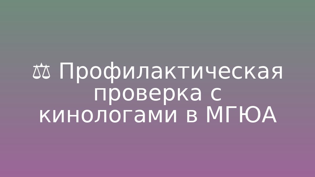 В Московском государственном юридическом университете им. Кутафина проведено профилактическое мероприятие по проверке антитеррористической защищённости учебного корпуса с привлечением службы кинологов. Администрация вуза заявила, что процедура прошла без ущерба образовательному процессу и соответствует требованиям законодательства.