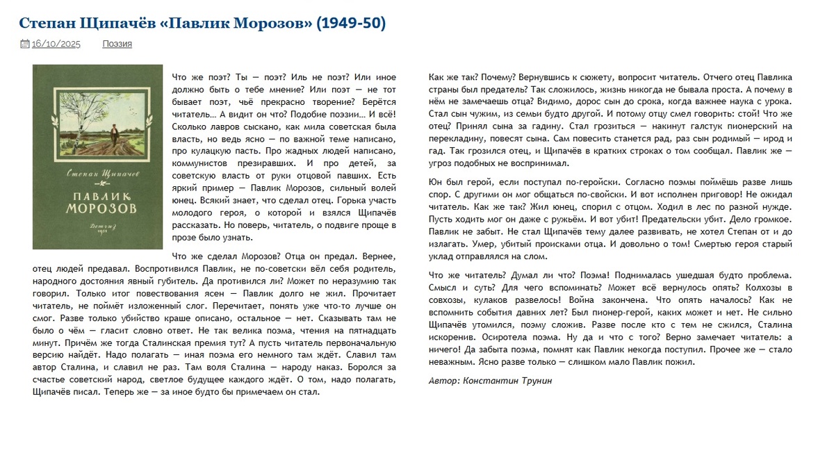 Степан Щипачёв "Павлик Морозов" (1949-50) | Критика