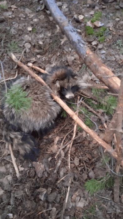 Государственный охотинспектор во время планового рейда в Заклязьменском охотугодье Гороховецкого района спас енотовидную собаку, попавшую в браконьерскую петлю. Животное было обнаружено у норы и освобождено от смертоносной ловушки.