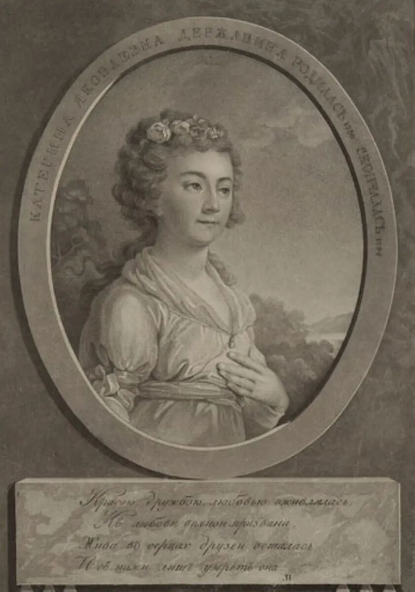 Читатель! Легко вспомнить, какие женщины вдохновляли Пушкина, Тютчева, Блока или Маяковского. А кому посвящали свои стихи другие известные поэты? Вспомним прекрасных дам русской литературы. Гавриил Державин: Пленира и Милена. Свою первую жену один из главных русских поэтов XVIII века обессмертил под псевдонимом Пленира, от глагола "пленять" (в то время любили подобные эксперименты над именами; имя Светлана так и возникло). Её отец Яков Бастидон был португальцем, приехавшим в Россию в свите Петра III, он был его любимым камердинером. Мать Екатерины была кормилицей великого князя (будущего Павла I), то есть обожаемая им невеста была достаточно простого происхождения, но с большими связями. Державин обожал свою темноглазую супругу и посвящал ей множество стихотворений. Увы, в 34-летнем возрасте, после 16 лет брака, она скончалась. Вскоре Державин женился второй раз, на Дарье Дьяковой, но, как говорил сам, для того, чтобы, "оставшись вдовцом, не сделаться распутным", а не по любви. Вп
