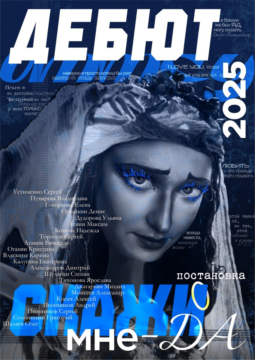 Что, если заветное «Да» скажет не тот, кто жив? 💍 ➡️Премьера концертной программы «Скажи мне — Да!» уже совсем скоро — 18 октября в зале Петров на фестивале творчества «Дебют — 2025». История, вдохновлённая миром Тима Бёртона💀, перенесёт зрителей туда, где любовь пересекает границы жизни и смерти. Репетиция свадьбы оборачивается чередой мистических событий: живые и мёртвые меняются местами, чувства испытываются на прочность, а обещания приобретают иной вес. ➡️На сцене — загадочная атмосфера, готическая эстетика и по-настоящему сильные эмоции. 🔵Начало в 11:45 🔵Вход свободный — но сердце💀 может остаться на сцене Будь в курсе событий РУТ