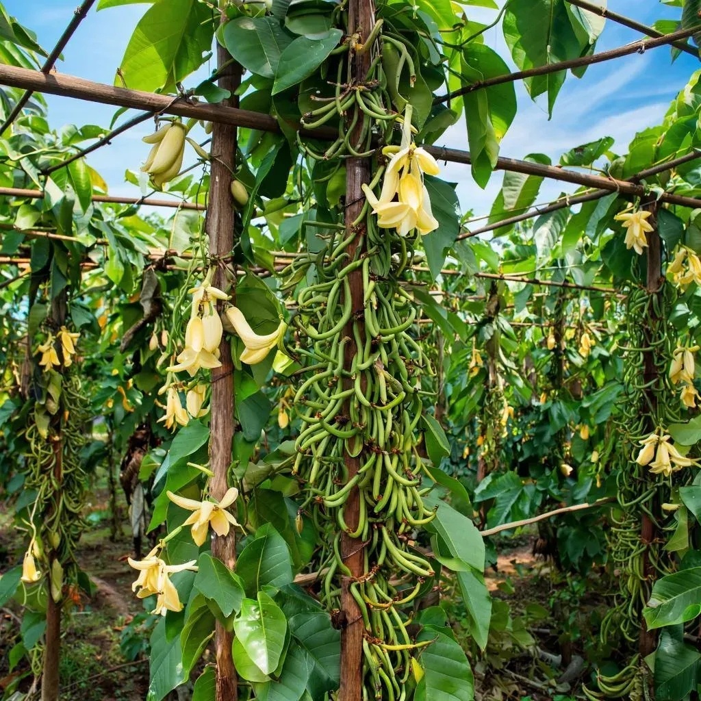 Крупнейшим производителем ванили считается остров Мадагаскар. Когда наступает вечер на острове Мадагаскар, густой покров темноты окутывает бескрайние поля и рощи. Повсюду царит особая атмосфера, пропитанная свежим воздухом влажного тропического климата и насыщенным ароматом специй. Среди них особенное место занимает запах зрелых стручков ванили – пряный, теплый и слегка терпкий, создающий ощущение уюта и гармонии природы. С наступлением сумерек мягкий бриз начинает ласково колебать ветви высоких кокосовых пальм, нежно шелестя листьями и нашептывая легенды стародавних времен местным жителям. Древние деревья кажутся хранителями секретов создания уникальных вкусов и богатейших ароматов, которые дарит остров всему миру. В ночном небе мерцают звезды, отражаясь в миллионах крошечных капелек влаги, сверкающих на листьях растений. Ночью здесь происходит что-то удивительное: невидимые процессы происходят внутри каждого плода, незаметно меняя их структуру и формируя будущий уникальный букет о