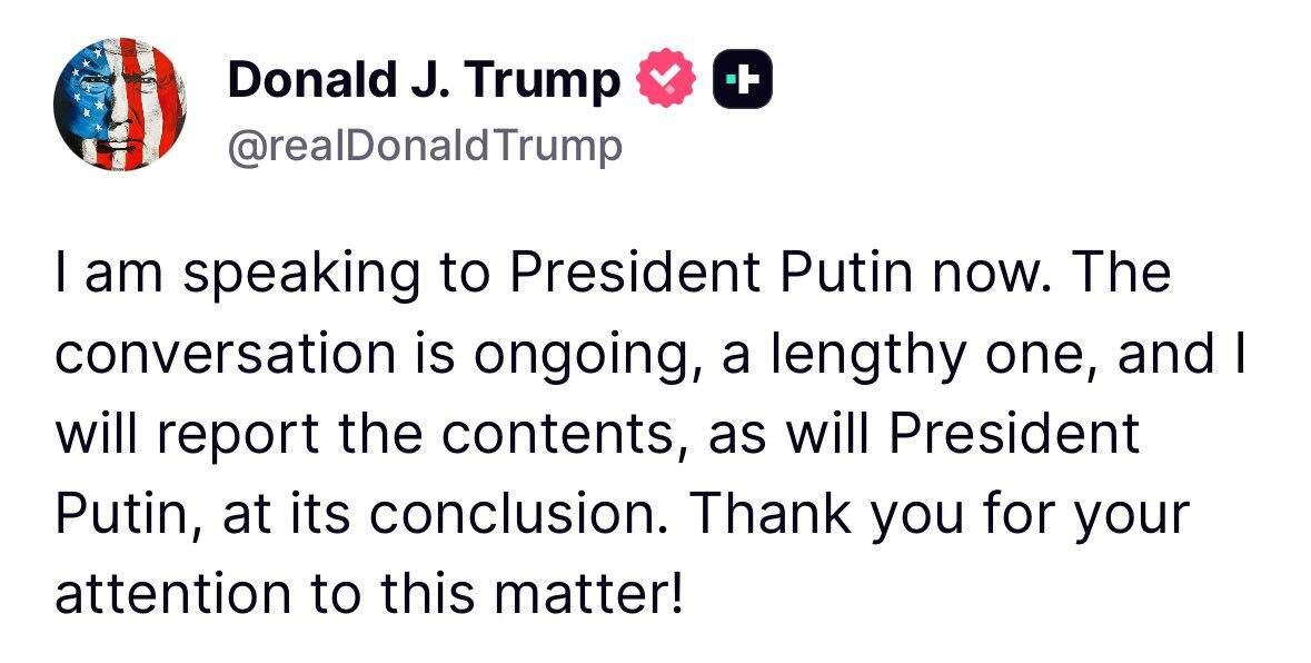 Трамп подтвердил, что сейчас разговаривает с Путиным