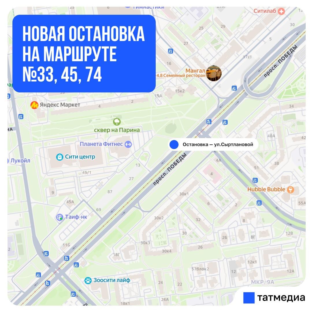 В ответ на пост 🚌⚜️ В Казани добавили остановку на маршрутах №33, 45, 74 С 18 октября на маршрутах появится остановка на улице Сыртлановой по Проспекту Победы в направлении улицы Хусаина Мавлютова. @tatmediaofficial | Все каналы Татмедиа ™️ 1-й новостной MAX-канал Татарстана - подпишитесь.