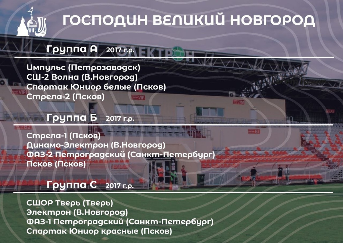 Турнир господин великий Новгород пройдет на стадионе электрон с 17 по 19 октября