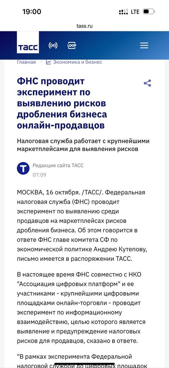 ⚠️ Налоговая с маркетплейсами вместе уже ищут дробленцев.